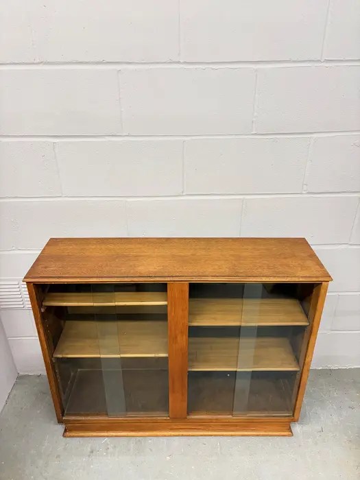 Mid-century glazed bookcase with sliding glass doors